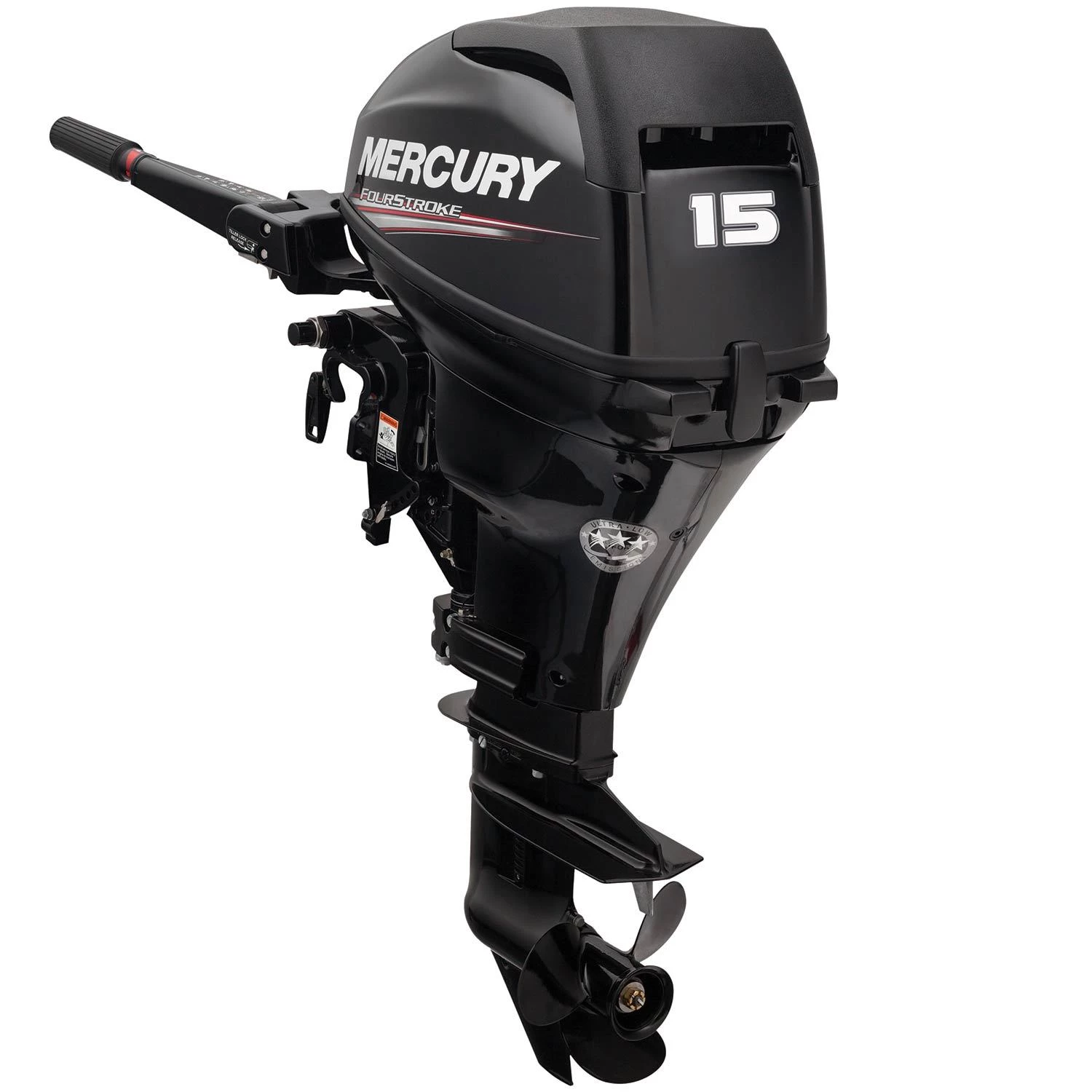 | Note: These Mercury outboards have 4-stroke engines and, like virtually all 4-stroke engines, depend on oil in their crankcases for lubrication. To prevent the oil from leaking during transport, the engines are not shipped with oil in their crankcases. You must put the correct amount and grade of oil in the crankcase prior to the first use or you will cause extensive damage to your engine, which is not covered by your engine’s warranty. Please read the owner’s manual for more information. For U.S. shipment ONLY. |